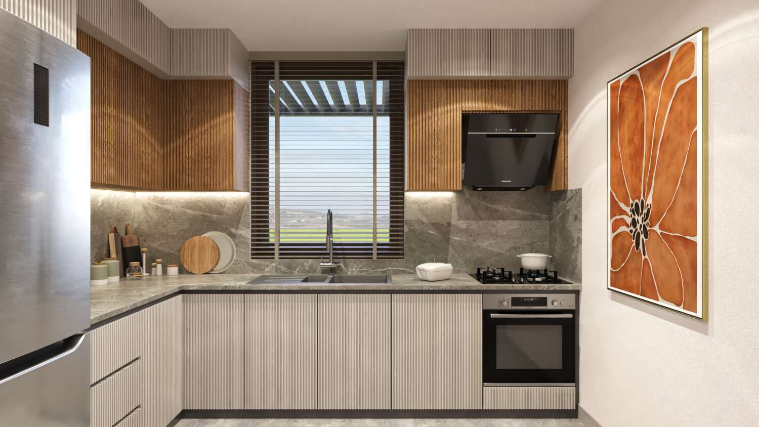 Özel Tasarım Ankastre Mutfak ve Geniş Yaşam Alanları