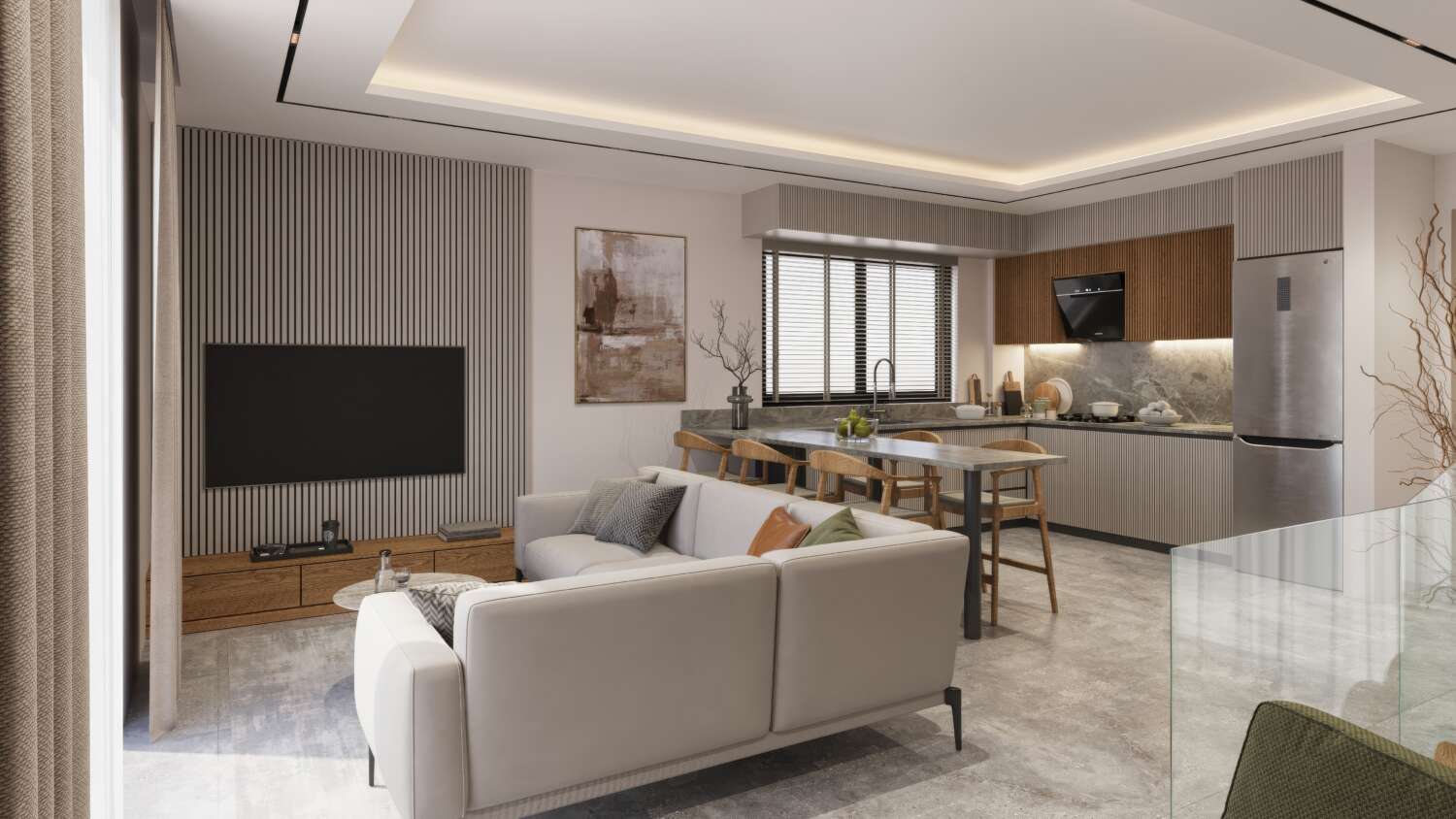 Özel Tasarım Ankastre Mutfak ve Geniş Yaşam Alanları